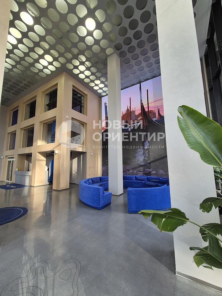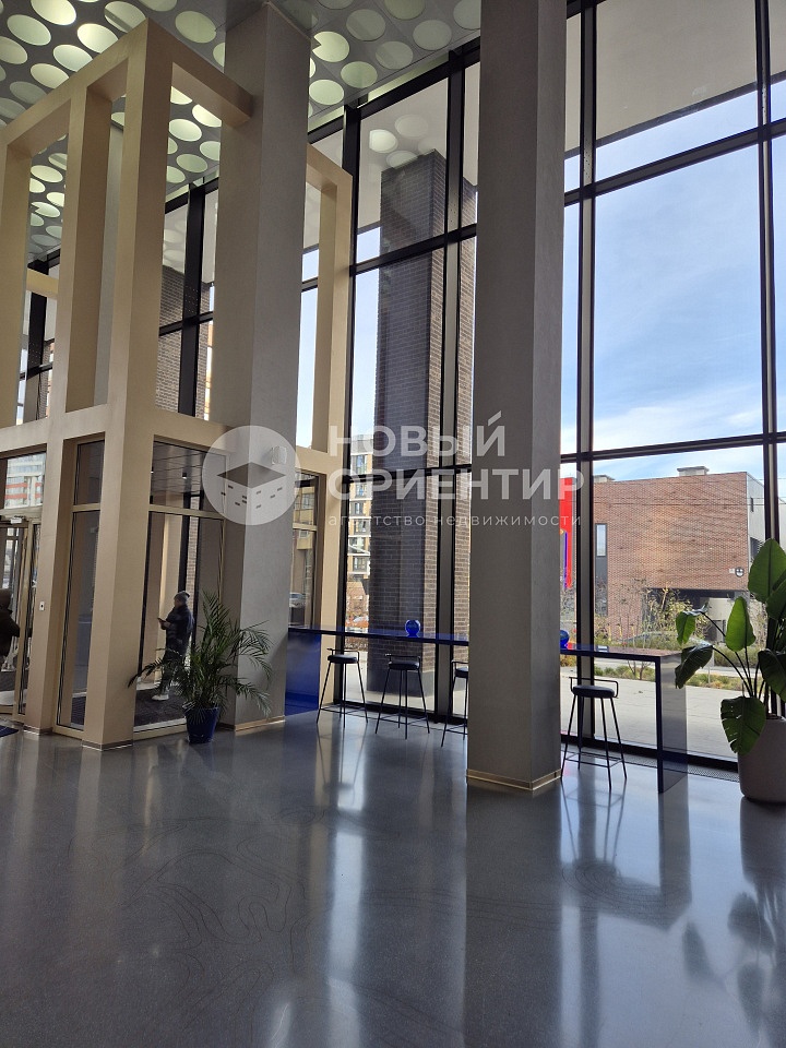 Дизайн холла от нью-йоркского архитектурного бюро CROSBY STUDIOS. Высота потолков – 10 метров. Пространство с уютными столиками и специально подобранным музыкальным сопровождением, зона самообслуживания с круглосуточно работающими вендинговыми автоматами и гостевой санузел. Из центрального холла, не выходя на улицу, можно попасть в расположенный в резиденции ресторан.