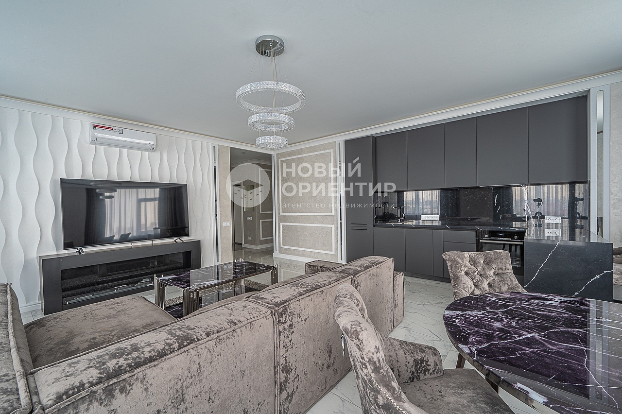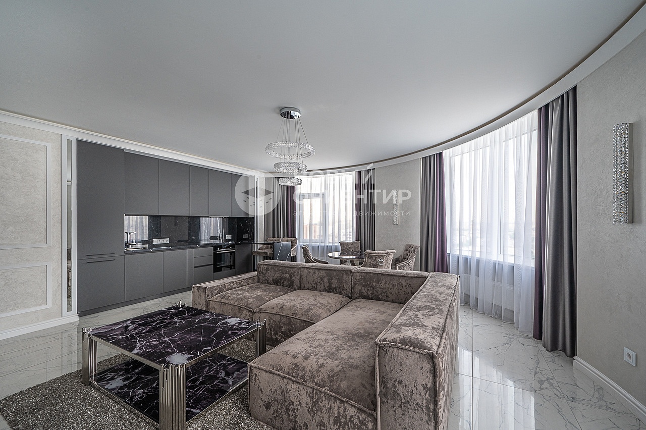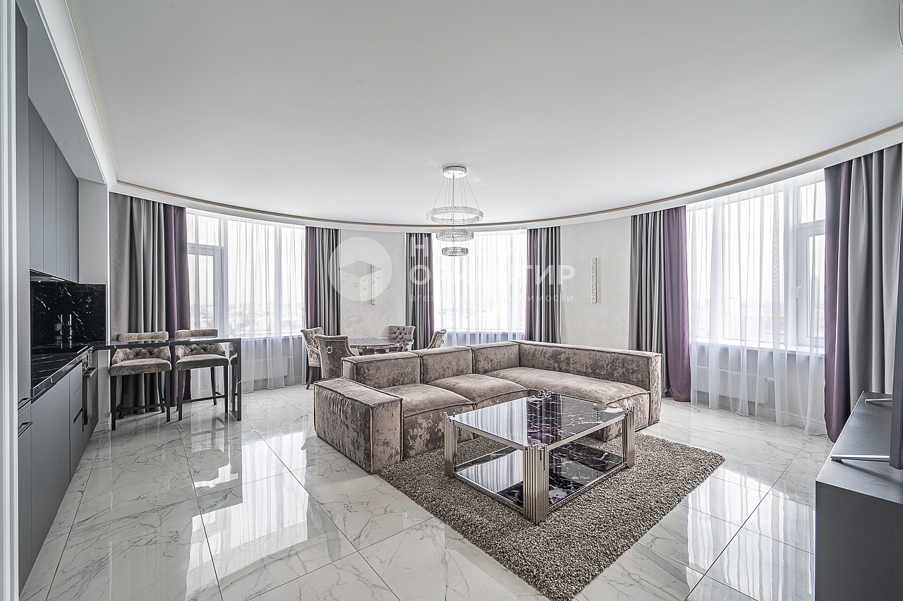 - Большая кухня-гостиная с панорамным остеклением и шикарным видом на город