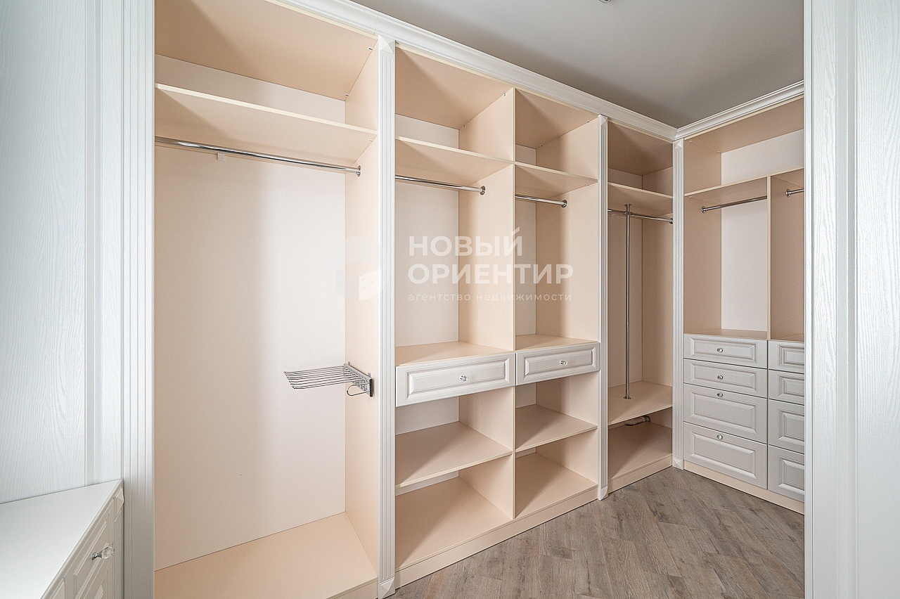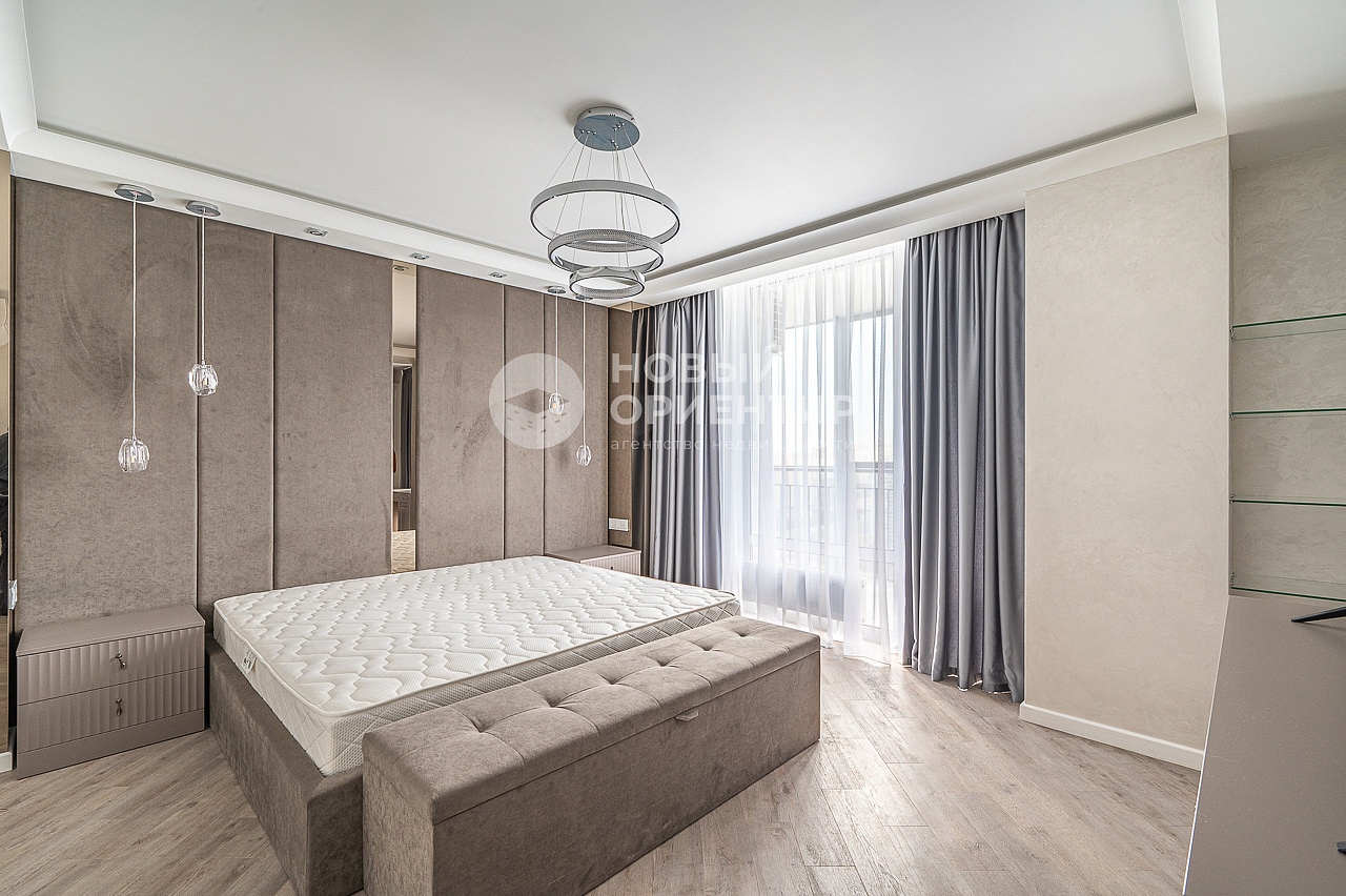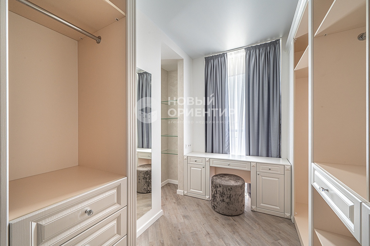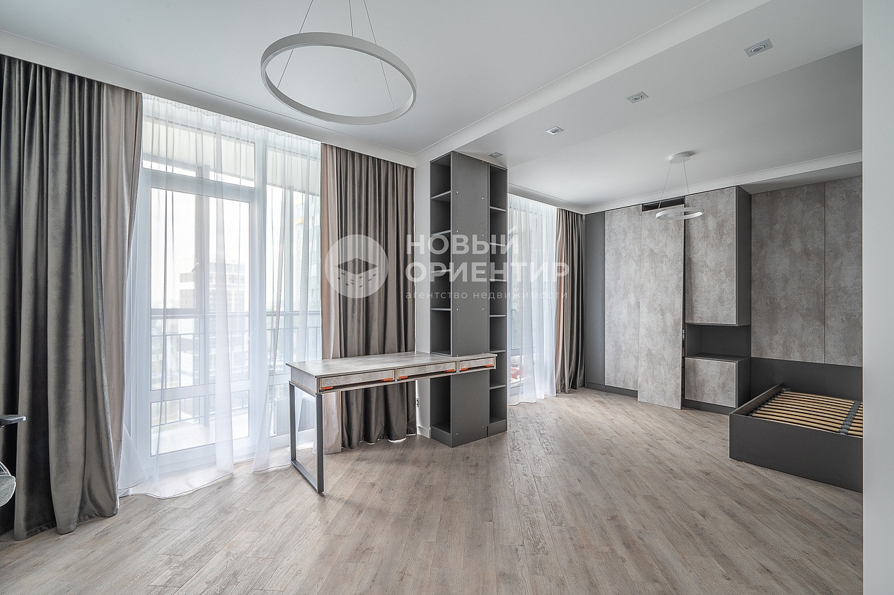 - Просторная спальня с отдельной гардеробной, рабочим местом и выходом на лоджию