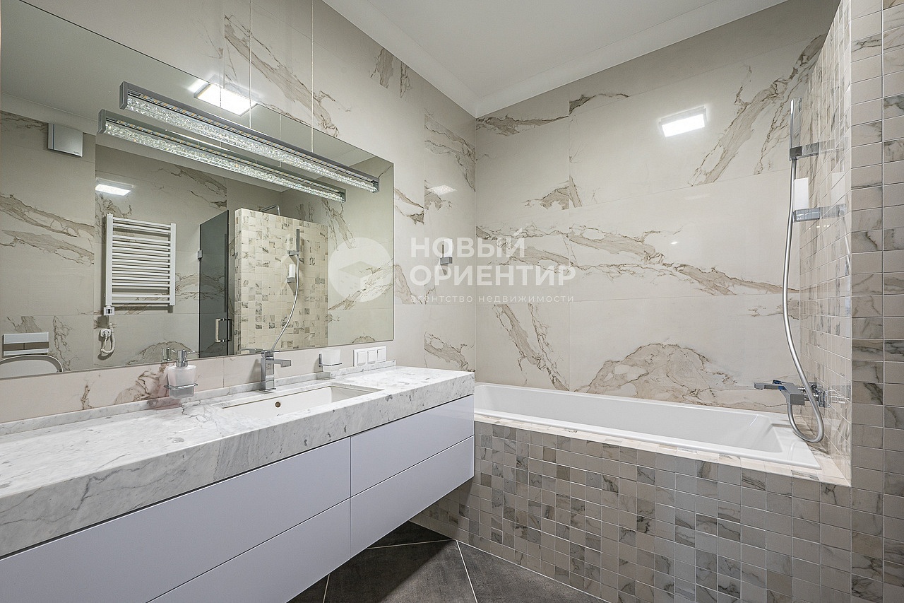 - На полу в прихожей и в санузлах Итальянский керамогранит, столешница в санузле выполнена из натурального камня