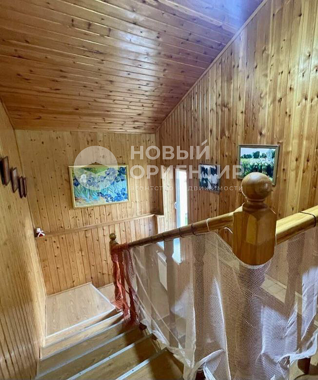 В доме комфортная, безопасная деревянная лестница с надёжным ограждением.
