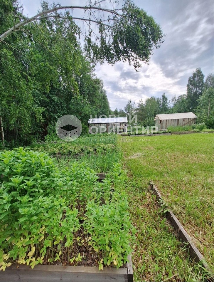 Участок разработан, земля плодородная. Обустроены грядки, растут плодовые кусты и деревья, насаждения земляники.