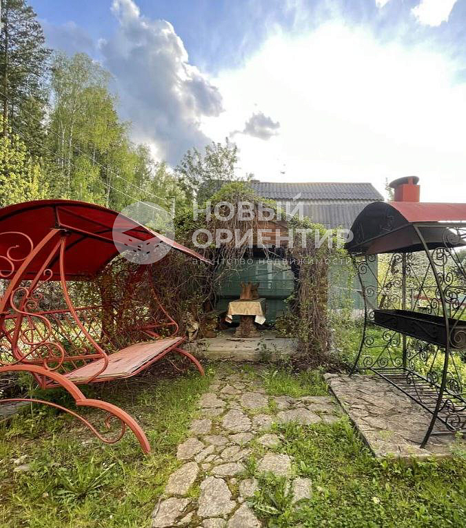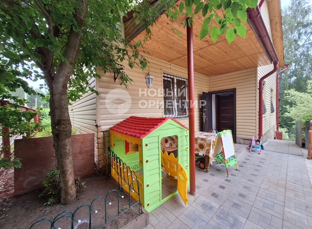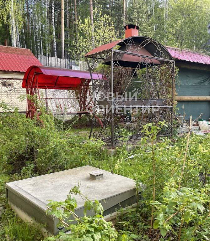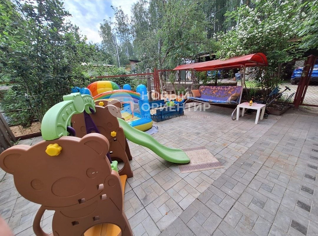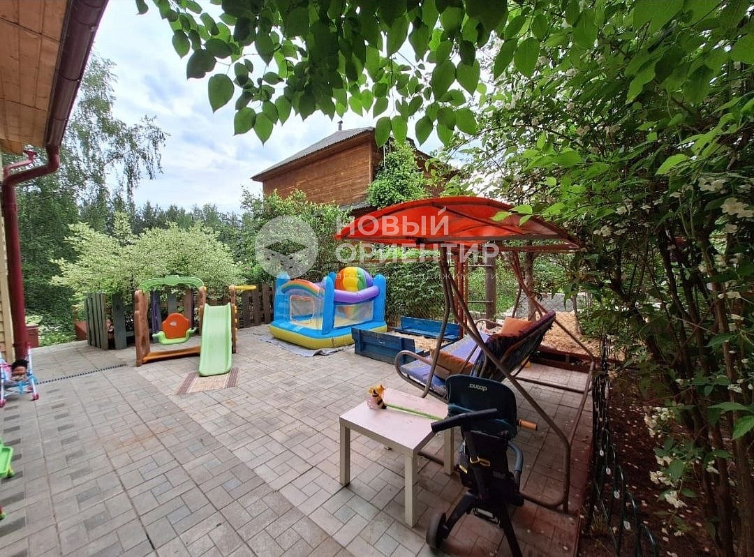 На участке выделены зоны для отдыха: беседка с мангальной зоной, детская площадка, терраса. Два просторных навеса под автомобили.