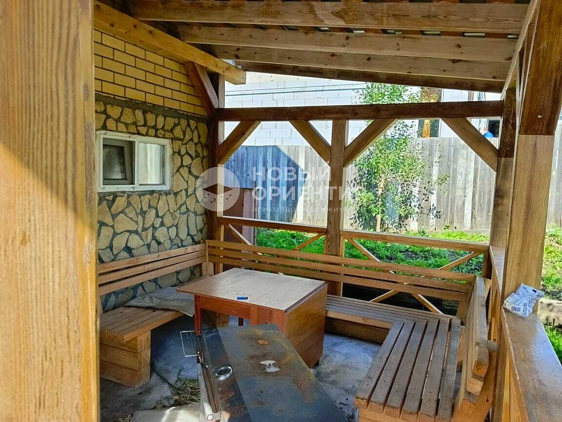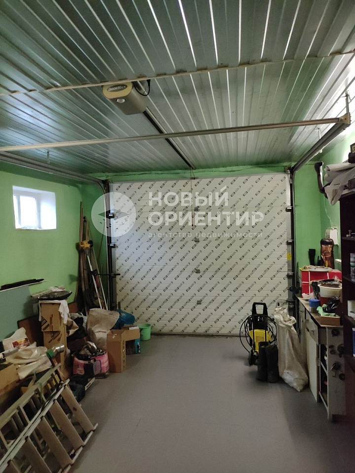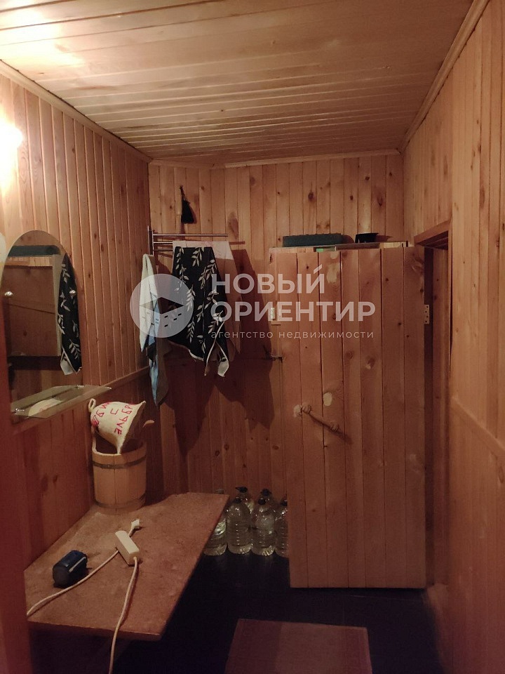 На первом этаже - прихожая, санузел, котельная, гараж, баня на дровах.