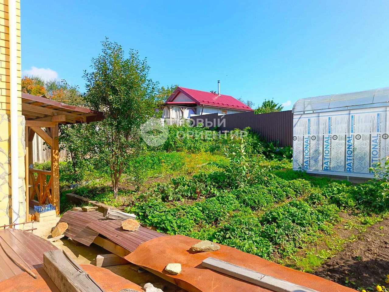 Участок 6 соток с плодородной землей, посадками и двумя теплицами. Есть веранда.