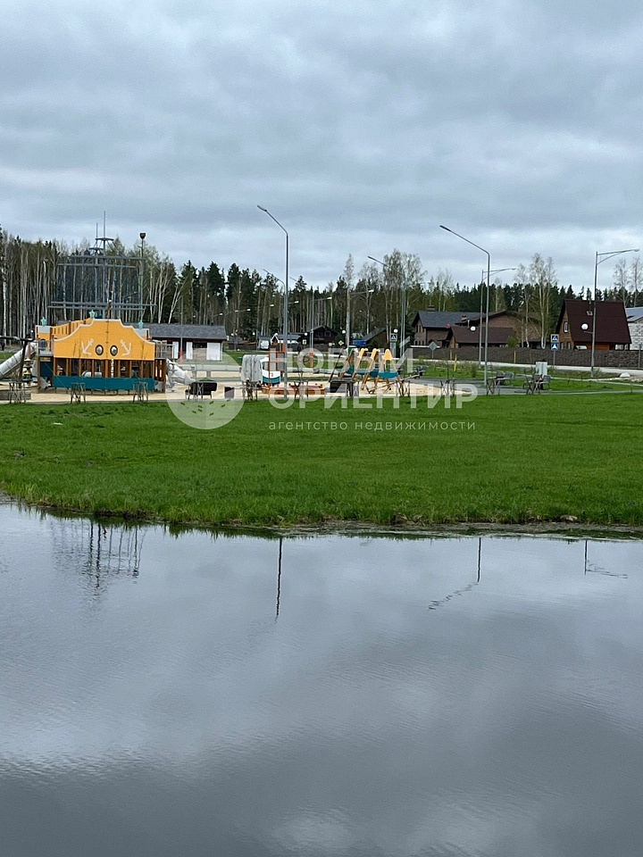Дороги в КП и в самом парке, прямо до границы участка асфальтированные с освещением, коммуникации централизовано проложены под землей: газ на границе участка, электричество и вода уже заведены в дом.