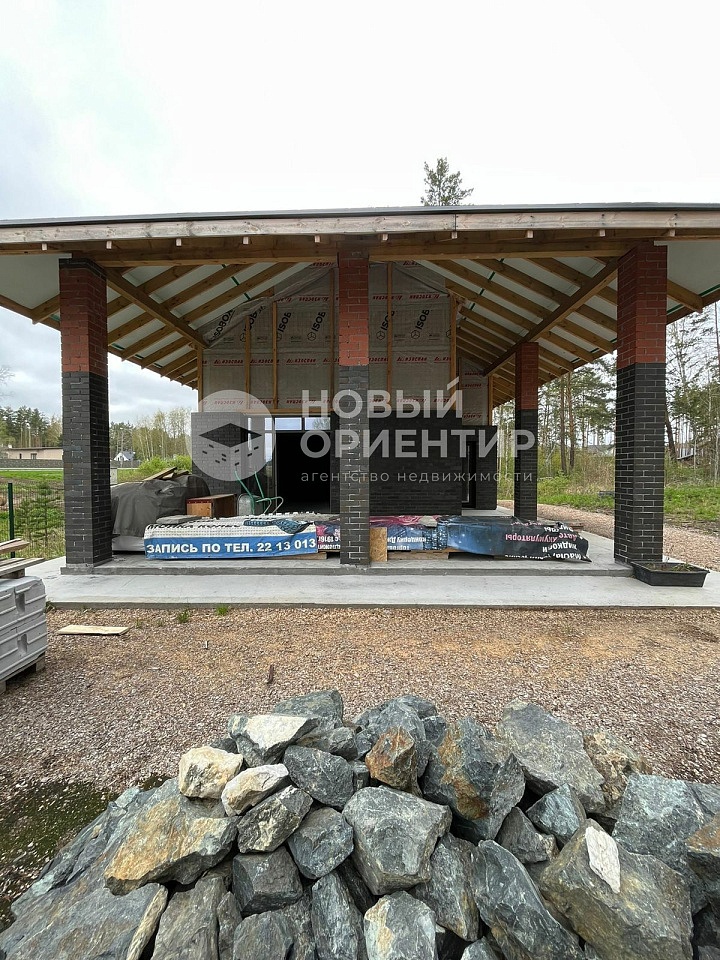 Фундамент - УШП, водяное отопление в полах выполнено и подключено. Предварительно сделана полная выторфовка , засыпано 600м3 скалы с послойной трамбовкой. Стены твин блок (инси D600 толщина 300 мм), утеплитель (базальтовая плита 100мм), облицован кирпичем. Дом 12,5*7 метров, включает в себя прихожая, гостиная с кухонной зоной с высотой потолка 5,5м, из гостиной есть выход на террасу 4*7, так же запланирован монсардный этаж 25м2- открытая мансардная спальня, или по желанию можно выгородить две комнаты, санузел, душевая, предбанник, парилка 3*3м. Кровля из гибкой черепицы Shinglas серого цвета. Степень готовности дома – под чистовую отделку по вашему дизайну.